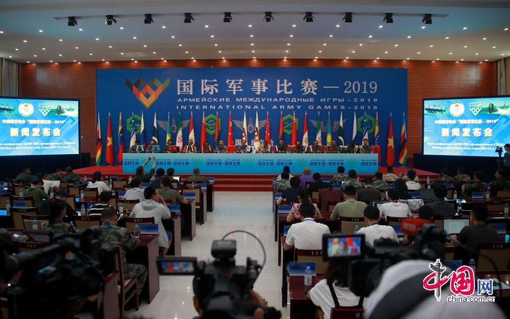 中国网库尔勒8月2日讯(记者 裴希婷 通讯员 张圣涛 李梦奇)2日上午,中国陆军在新疆库尔勒举办“国际军事比赛-2019”新闻发布会,陆军办赛领导小组副组长、陆军政治工作部副主任党增龙少将介绍了中国陆军办赛参赛有关情况,亚美尼亚、白俄罗斯、埃及、伊朗、哈萨克斯坦、巴基斯坦、俄罗斯、乌兹别克斯坦、委内瑞拉、越南、津巴布韦和中国的12位代表团指挥官向中外记者介绍了本国代表队参赛备赛情况。