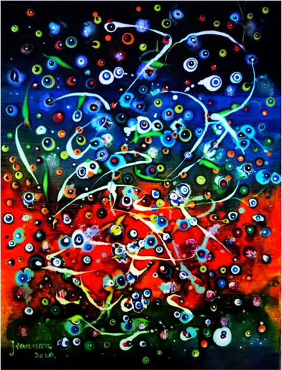 其时,黄建南虽身在异国它乡,但无刻不与祖国同在,他心系祖国,心系武汉,创作了《翘盼福音》《春之花》《春暖花开》等画作,表达对祖国的忧思与祝福。