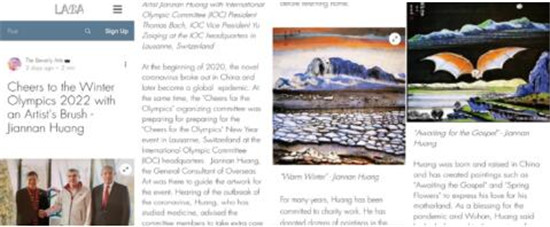 近日,美国比佛利艺术节新闻专刊对“为奥运喝彩”海外艺术总顾问黄建南用画笔助力抗疫,为中国加油一事进行了报道(如下截图)。比佛利艺术节在全球极具影响力,其新闻专刊如此报道中国艺术家,极为鲜见。
