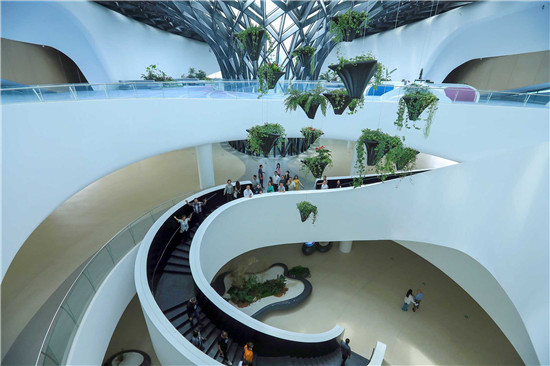 成都,海外华文媒体代表参观四川天府新区独角兽岛。王磊 摄