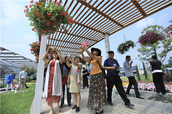 成都郫都,海外华文媒体代表在班纳利种业(成都)种苗繁育创新基地拍摄盛开的鲜花。王磊 摄
