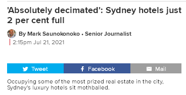目前,悉尼唯一有生意的酒店是那些作为隔离酒店运营的酒店。然而,在联邦政府将乘坐国际航班入境的乘客人数上限削减50%之后,这些隔离酒店的“财路”也受到了影响。对此,约翰逊称:“随着入住率下降,即便是这些隔离酒店也将开始感到经济拮据。”