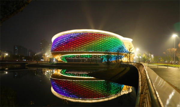 本网讯| 2022年是杭州的“亚运年”,各项工作正在如火如荼筹备中。近日,杭州运河体育公园已悄然亮起了灯,在灯光的照耀下,体育馆犹如一轮明月升在运河之上。