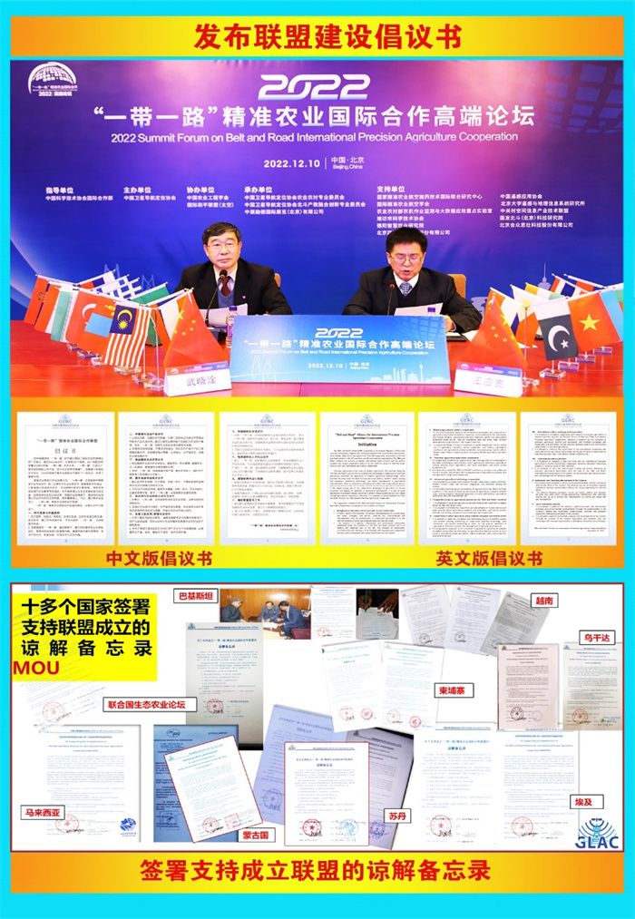 作为本次论坛的重要环节,中国卫星导航定位协会副秘书长武晓淦和中国农业工程学会执行秘书长王应宽共同发布了中英文版的“一带一路”精准农业国际合作联盟倡议书(2022)并报告了联盟筹建工作进展。截至目前,已经联系33个国家,并与来自12个国家的4个国际组织和32个机构签署了34份合作意向函、支持函或谅解备忘录。