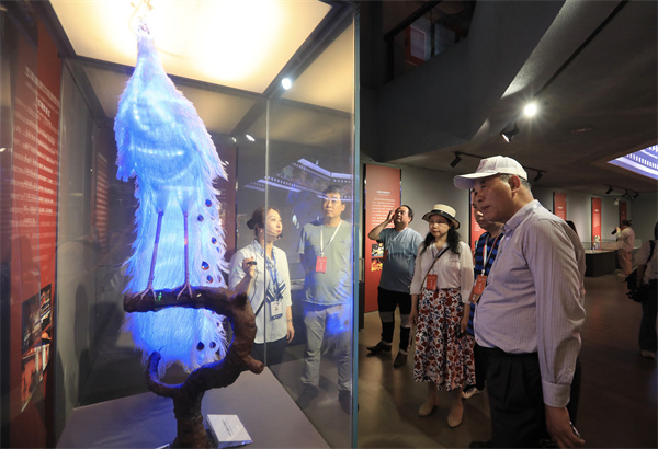 中国彩灯博物馆是世界唯一的彩灯文化专业博物馆,展示、保护和传承着国家级非遗“自贡灯会”及省级非遗“自贡彩灯传统制作工艺”。海外华文媒体高层一行在这里领略国家级非遗代表性传承人和工艺美术大师的代表作。在用上万件瓷器餐具以棉线精心捆扎而成的“瓷器宫灯王”前,大家纷纷用相机、手机拍照,感叹其做工精细。