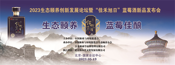 探索生态颐养行业创新,促进蓝莓产业发展,共享蓝莓酒市场机会,由中国林业与环境促进会主办,中国林业与环境促进会生态颐养分会、江苏新商学品牌管理有限公司承办的“2023 生态颐养创新发展论坛暨‘佳禾旭日’蓝莓酒新品发布会”于2023 年 5 月 19 日下午在北京国家会议中心开幕。