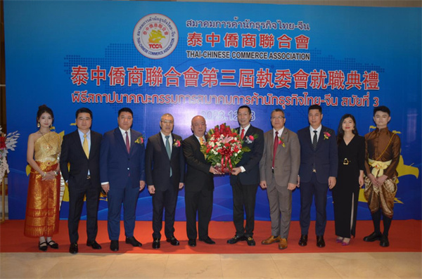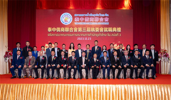 泰中侨商联合会第三届执委会就职盛典于2023年12月23日晚6时在泰国中华总商会光华堂隆重举行。邝锦荣博士蝉联第三届主席,泰国国务院第一副总理兼商业部长普坦·威乍耶猜阁下、泰王国阿伊瓦特查克潘亲王、中华人民共和国驻泰国大使馆刘敬师侨务参赞、泰国中华总商会林楚钦主席登台见证。泰国皇家、政府、侨界、商界领袖精英、社会名流、泰中侨商联合会和东部经济走廊(EEC)分会、清迈分会、青年委员会的成员莅临出席盛典,冠盖云集,圆满成功。