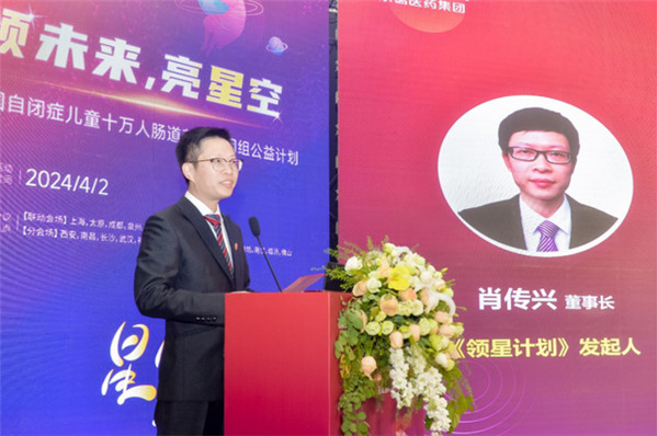 2024年4月2日是第17个国际自闭症日,承葛医药集团携手多省市妇联残联、数十家公益基金会、二百余家医疗机构、三百余家自闭症康复机构及爱心企业,数百位学术专家和近万名爱心人士,募集一亿元人民币共同成立《领星计划》专项爱心基金,启动《领未来,亮星空》——中国自闭症儿童十万人肠道菌群基因组公益计划。