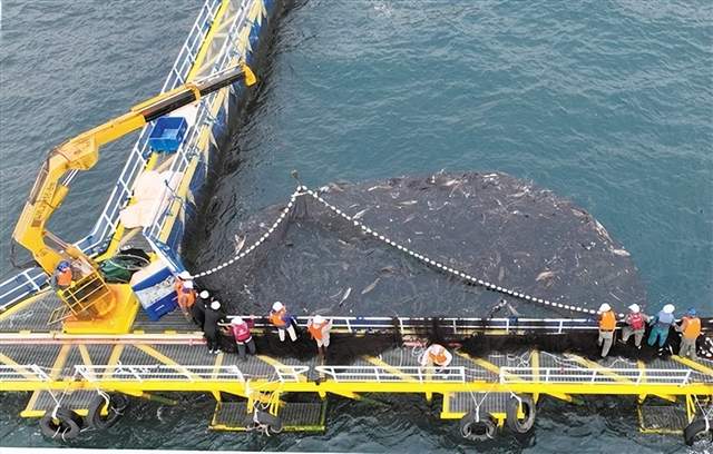 “台山1号”的首批渔获,收鱼总重量超过50吨,存活率达100%。