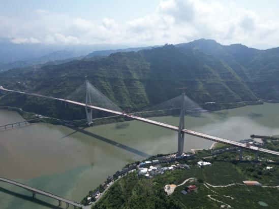 大桥位于珍稀鱼类县级自然保护区,对生态环境保护措施有着极高要求。项目团队始终坚持生态优先的理念,采用封闭式钢杆件制造,有效减少了粉尘与噪声对周边环境的污染;强化对污染物质的管理,增设油污回收装置等环保措施,防止施工过程中的油污等污染物进入金沙江,实现了工程建设与环境保护的和谐统一,让金沙江水依旧清澈,生态环境得以延续。?