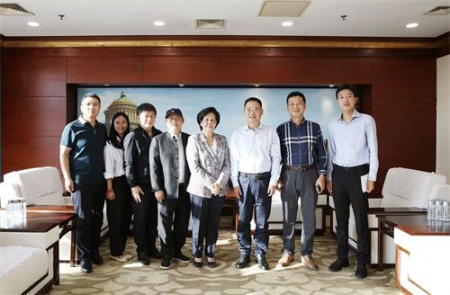 启迪控股董事长王济武(右三)与柬埔寨公主阿龙拉斯美(右四)、世界客属总商会名誉主席、欧中之声文化传媒集团副总裁周万名(左四)一行合影