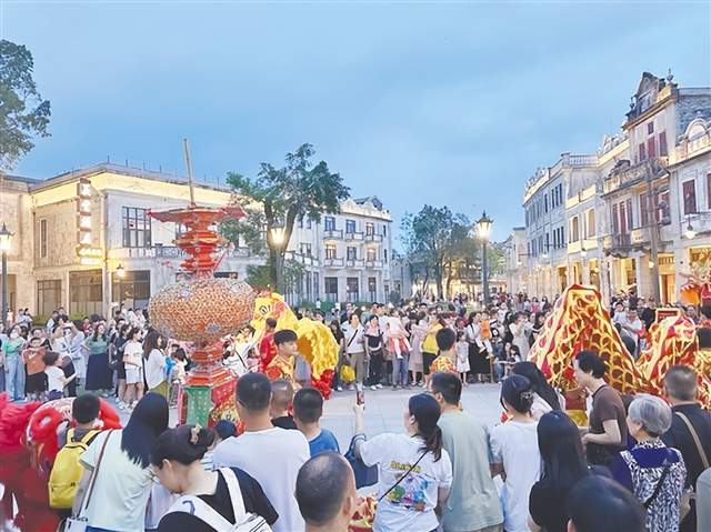 走进开平赤坎华侨古镇,延绵3公里的600多座古建筑被绿树繁花簇拥,历史风貌与现代烟火气在此交织共生。游客穿梭街巷,举着相机定格中西合璧的建筑美学,或是现场感受舞龙、醒狮非遗表演的传统文化之美。