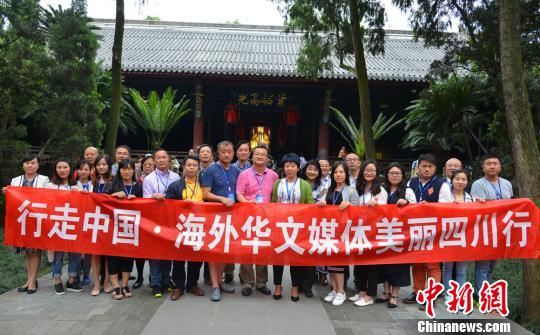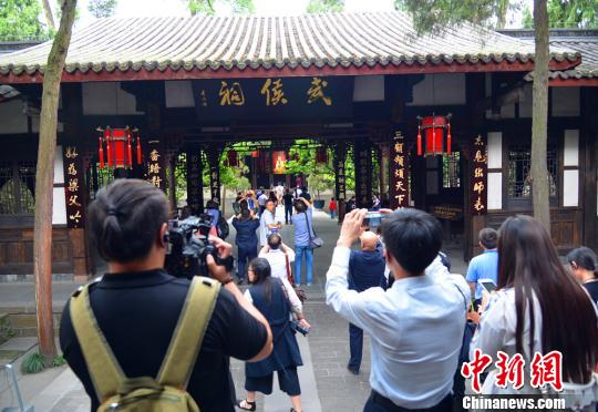 原标题:22家海外华文媒体成都武侯祠品三国文化 感受古蜀之美