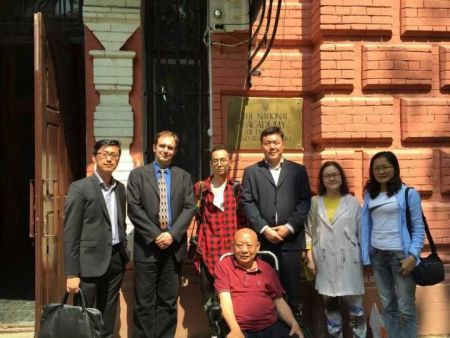 代表团一行与乌克兰国家美术学院副院长奥斯塔普·卡利丘卡合影(奥斯塔普·卡利丘卡左二 朱同景左四)