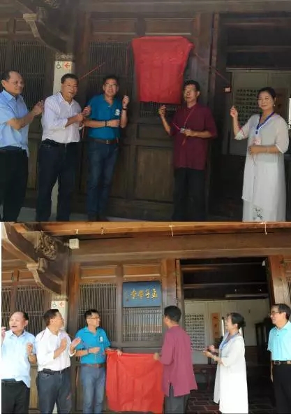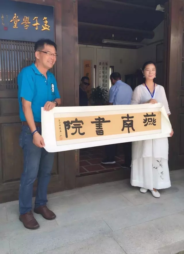 海峡两岸嘉宾:陈永栈、陈天成、石兆珉 、吕坤和、孟小红、李仕德等为燕南书院内的《孟子学堂》进行揭牌仪式