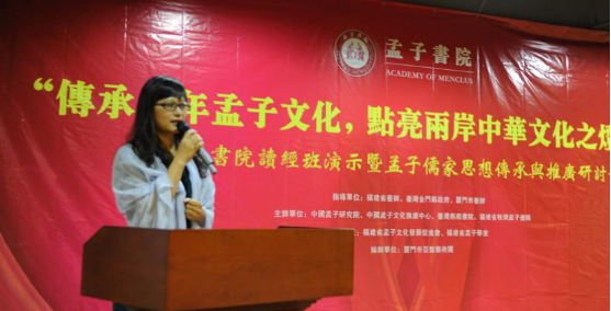 (圖)孟小紅,孟子後裔第75代、中國孟子文化推廣中心理事長、福建省孟子文化發展促進會會長、孟子書院院長