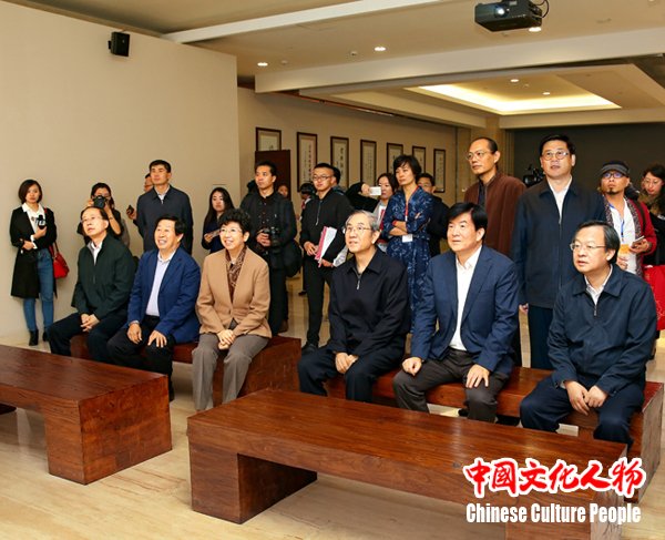 全国政协副主席马飚,中国文联党组书记、副主席赵实,中国文联党组副书记、副主席李屹,中国文联党组成员、副主席、书记处书记左中一,中国文联党组成员、书记处书记陈建文,中国文联副主席、中国美术家协会主席刘大为,中国美术家协会分党组书记兼秘书长徐里等领导及嘉宾观看专题片 中新社发 王保胜 摄