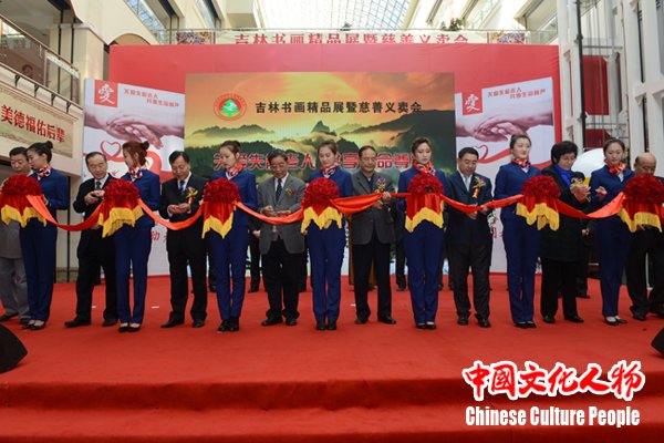 吉林省委常委、宣传部长高福平,吉林省人大常委会副主任车秀兰,吉林省政协副主席王尔智,原省级老领导王云坤、唐宪强、聂文权、刘润璞、包秦等领导为“吉林书画精品展暨慈善义卖会”开幕剪彩