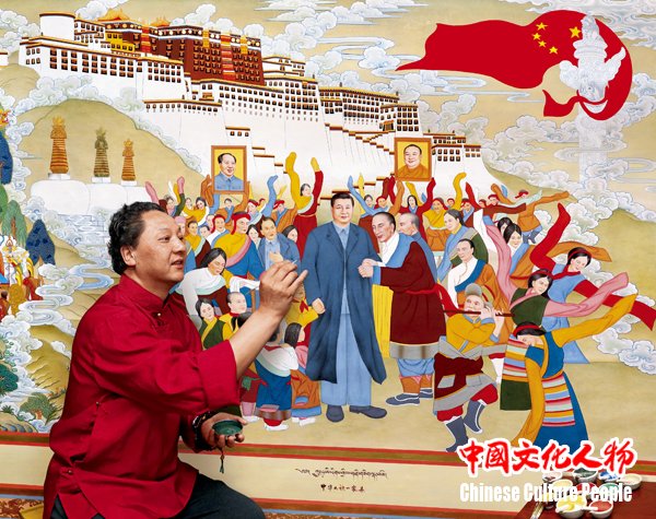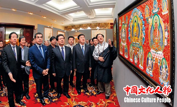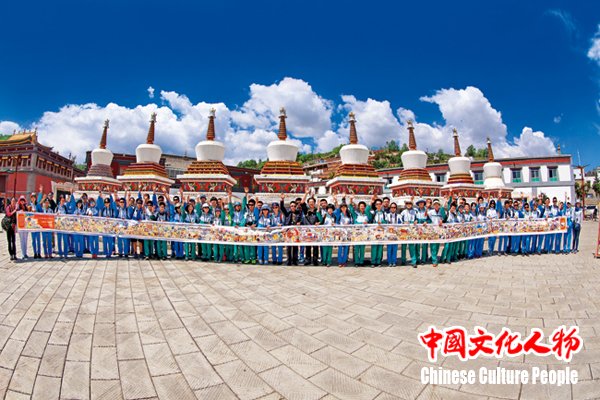 《中国文化人物》深度报道了国家民族画院唐卡艺术研究院执行院长、工艺美术大师桑杰本积极投身于“中华民族一家亲”大型美术创作工程,以爱国主义作为创作的主旋律,创作巨幅唐卡长卷 中新社发 王保胜 摄