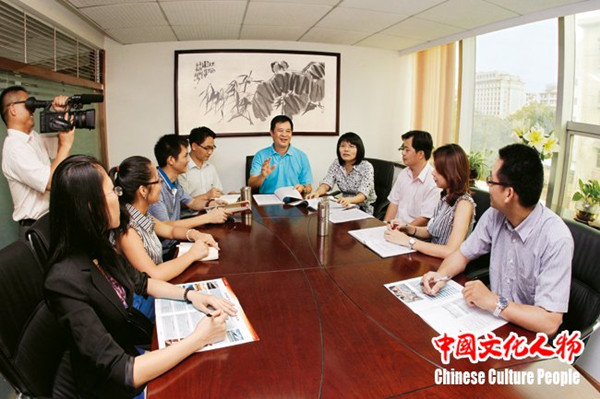 随着“中国文化走出去”和“一带一路”建设的推进,中国日益走向世界舞台的中心,需要积极讲好中国故事、传播好中国声音。周凡与她的精英团队一起探讨推动中华文化走出去的时代意义和有效途径 中新社发 王保胜 摄