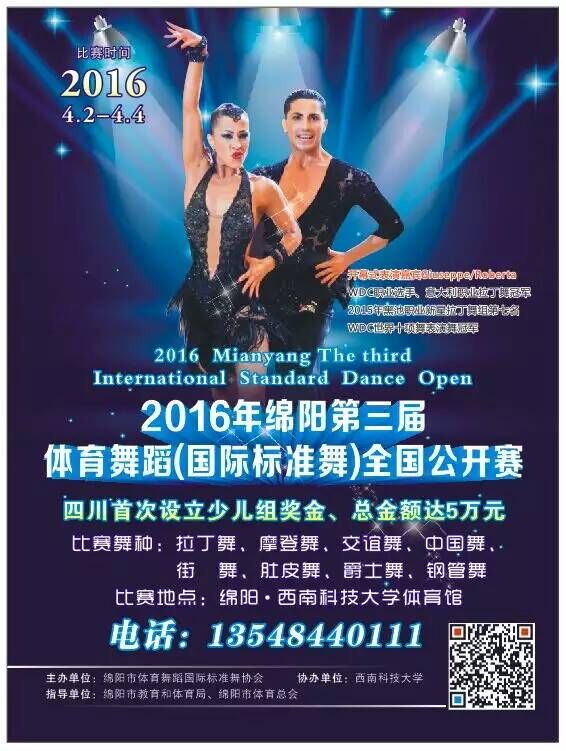 2016年绵阳第三届体育舞蹈(国际标准舞)全国公开赛火热开赛西非华人在线4月2日电(邓敏)2016年中国绵阳第三届体育舞蹈(国际标准舞)全国公开赛在四川省绵阳市西南科