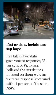 营销分析和战略咨询公司Forethought的Mood&Pulse月度报告近日显示,在过去一个月里,33%的受访维州人认为强加给他们的限制是一种“极端反应”,48%的受访新州人