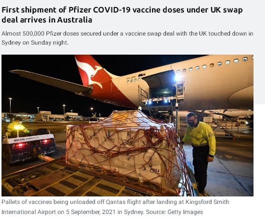 根据澳洲与英国达成的疫苗互换协议,近50万剂辉瑞疫苗已于上周日(5日)晚抵达悉尼。但是澳洲的疫苗短缺问题依然存在,对此,许多澳人开始在网上请愿,要求政府考虑引入