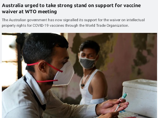 澳洲将在下周召开的世界贸易组织(WTO)会议上发出强烈支持,放弃对新冠肺炎疫苗的知识产权保护。发展中国家提议豁免新冠疫苗知识产权SBS9日报道,印度和南非此前发起