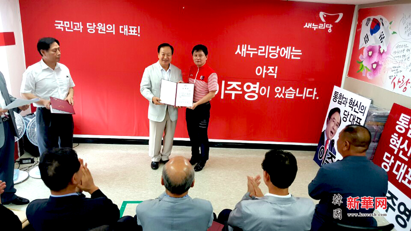 2016年8月1日下午,韩执政党最高委员党首候补李柱荣国会议员选举运动本部任命各部委委员长任命仪式在汝矣岛新国家党中央党部小会议室举行。韩国全国韩籍华人总联合