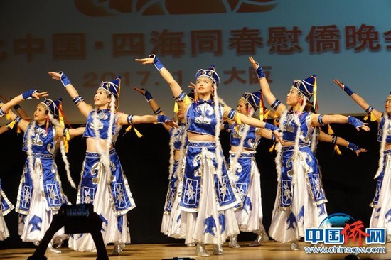 当地华侨华人表演蒙古舞《美丽的草原我的家》。中新社记者陆春艳摄 “当演员在8米高空倒立,做出连串高难度动作时,我的心都揪在了一起!”刚刚观看完“