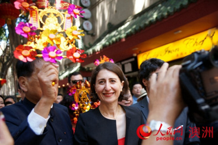 中新社悉尼1月30日电(记者赖海隆)澳大利亚新南威尔士州州长格拉迪斯·贝瑞吉克莲30日来到悉尼唐人街向当地的华侨华人拜年,在欢庆的锣鼓声中一同庆祝中国农历新年。
