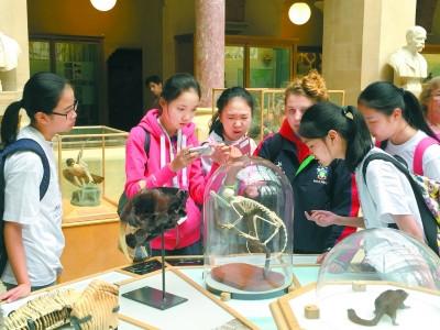 资料图:参加游学团的中国孩子在英国参观当地的博物馆。(图片来源:北京晚报/王琪鹏) 中新社北京4月22日电(周欣嫒)《国际游学蓝皮书》(以下简称“蓝皮书”)22日在