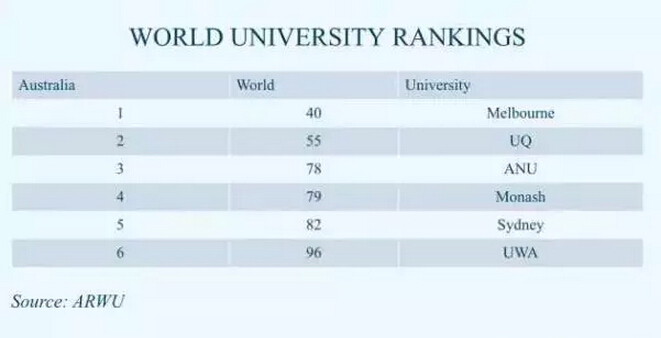 出国留学去哪里?看看排行榜做决定吧!2016年世界大学学术排名正式公布,澳大利亚共有6所大学跻身世界前100强,入榜数量仅次于美国和英国,排在世界第三位。不仅如此,