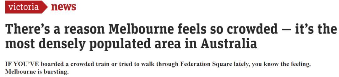 (澳大利亚新闻网:墨尔本是澳大利亚人口密度最高的区域!)
