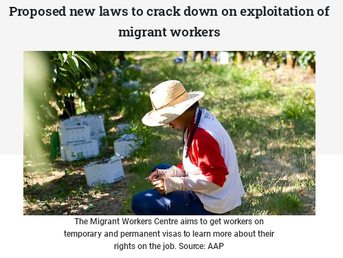 联邦政府正在提出一系列新措施,以杜绝对移民工人的剥削,其中包括将“雇主向他们施加压力,让他们被迫接受违反签证条件的工作”定为违法行为。联邦政府已经公布了一