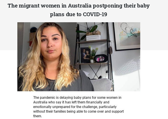 在新冠肺炎疫情期间,联邦政府规定移民的父母不能从海外入境澳洲,此举引发争议。由于身处海外的家人无法前来提供支持,一些移民女性近日推迟生育计划。目前,澳洲的